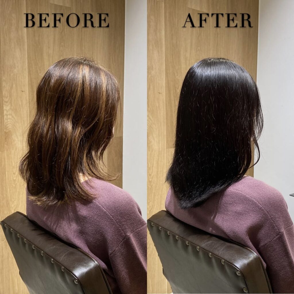美容室でハイライト部分を色落ちしない暗い髪色に染めることができない場合、ブリーチリペアトリートメント®︎で髪色を抑えるのがおすすめです!
