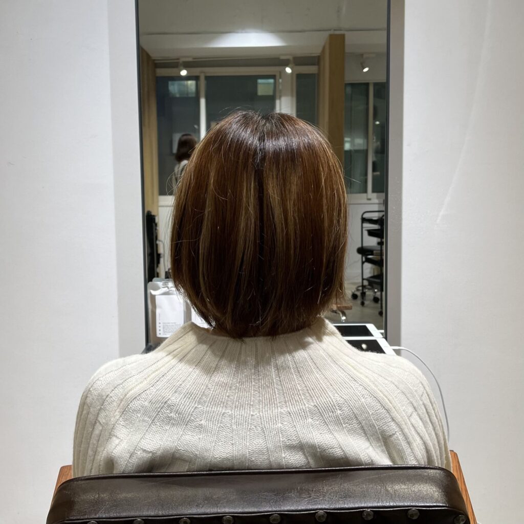 ブリーチリペア®︎をすることで、ハイライト部分を落ち着かせて上品な髪色にすることが可能です。
