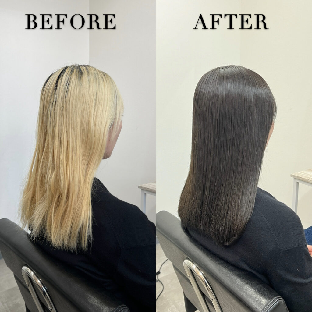 黒髪やブラウン系のカラーをキープしたいときは、当サロンが開発したオリジナルのカラートリートメント、ブリーチリペアトリートメント®︎がおすすめです!